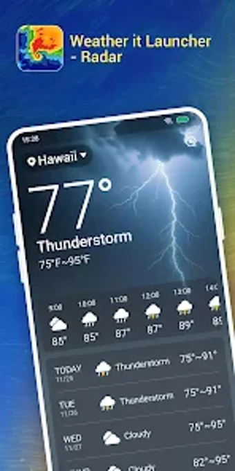 Weather it Launcher-Radar, Android platformunda kullanıcıların her an hava durumunu kontrol etmelerini sağlayan bir uygulamadır. Tek tıklama ile erişilebilen bu uygulama, kullanıcılara yedi günlük hava tahmini, gün içi saatlik hava bilgisi ve anlık hava durumu verileri sunarak doğru hava hizmetleri sağlamaktadır. Uygulama, kullanıcıların hava koşullarını kolayca takip etmelerine yardımcı olmayı amaçlamaktadır.